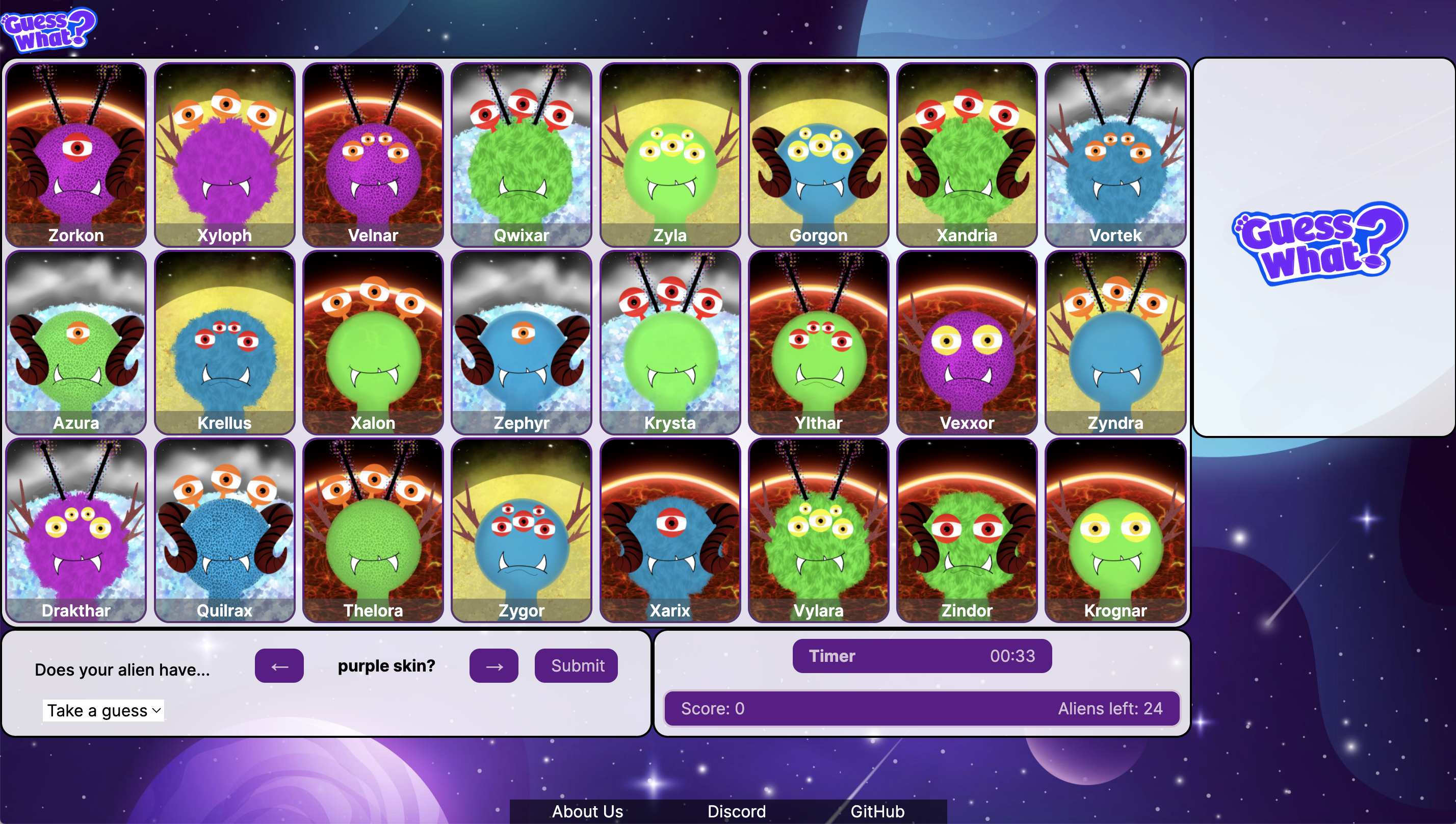 - A play on the classic Guess Who, players can select a yes/no question to ask about their opponent's card.